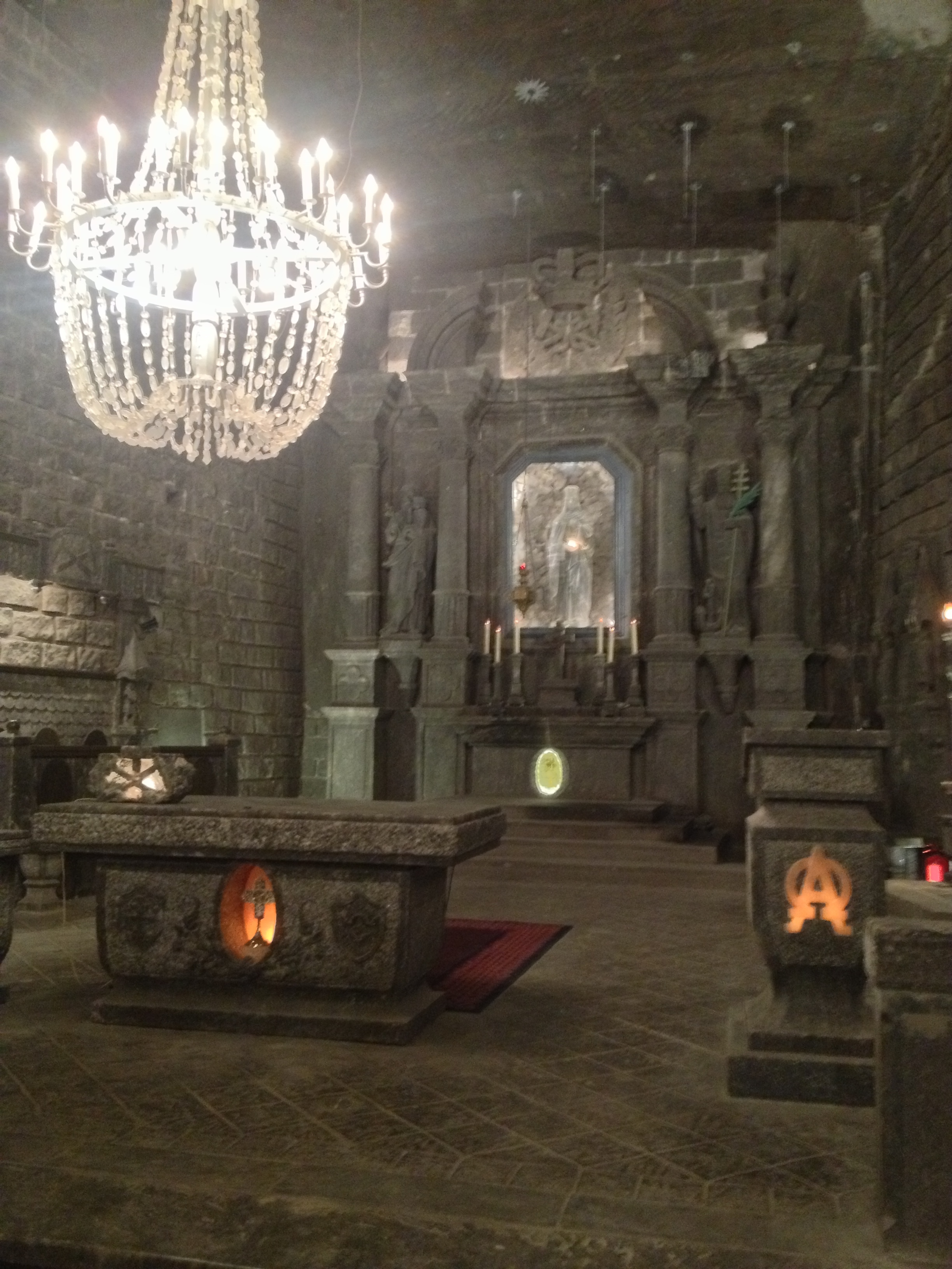 Some of the churches are even several hundred feet underground. The church in this picture is in the depths of the Wieliczka Saltmines, and has been entirely carved from rock salt by the miners. Everything. Altar, statues, friezes depicting the Last Supper – all of it is made from salt. Even the beads on the chandelier are pure salt.