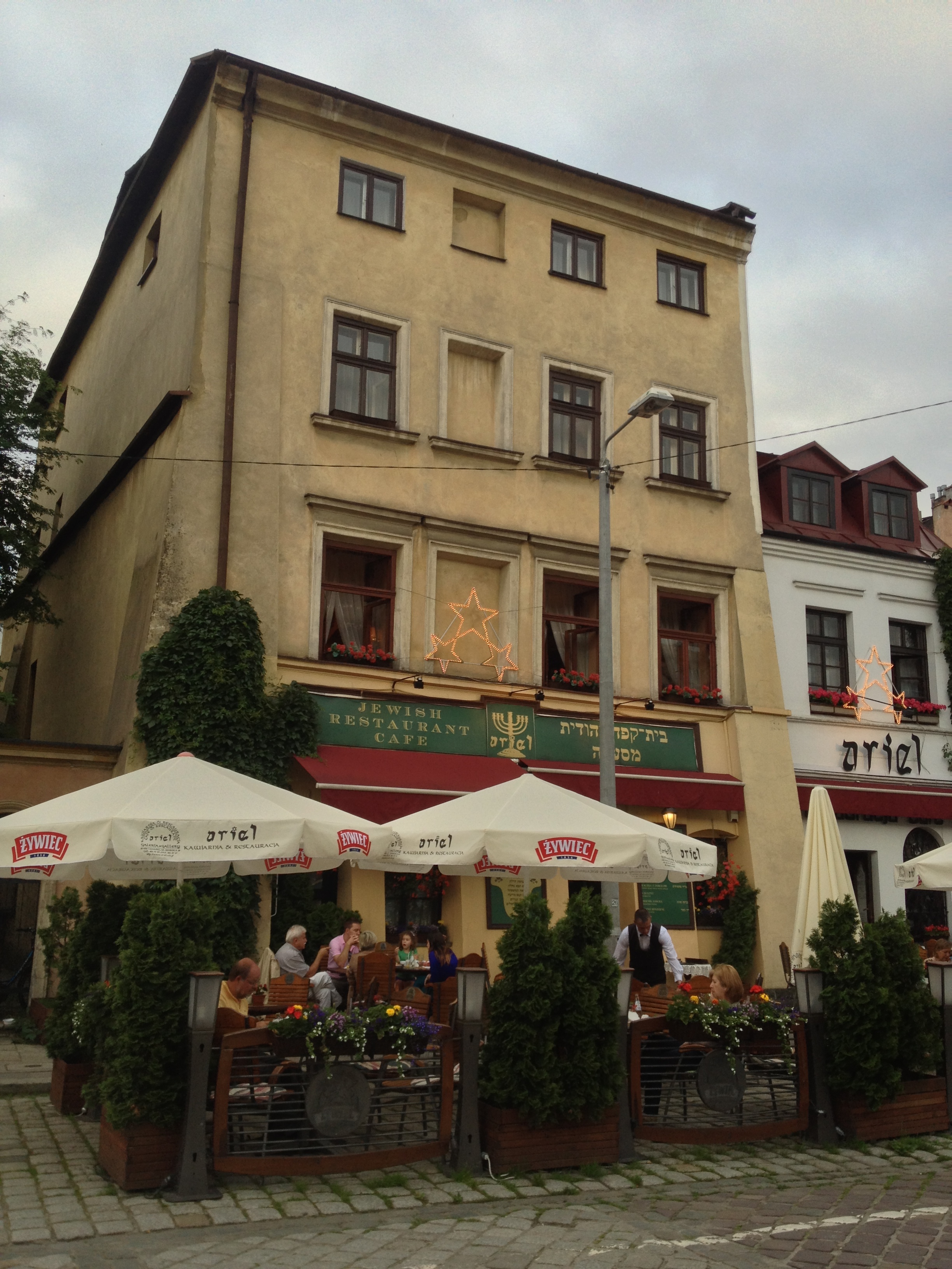 Above ground and when you’re not steeping yourself in history, Krakow is a fabulous city for fans of al fresco people-watching. The Jewish Quarter is still the site of some beautiful buildings (you’ll get the spiel about how some of them appeared in Schindler’s List), including a bar/restaurant that now occupies the site of what were several tiny shops – the original external signs are retained, a suggestion of brickworks illustrates where the shop walls used to be, and the whole is rather charmingly decorated with appropriate knicknacks. Ariel restaurant, shown here, does indeed feature in the film – and serve rather delicious food!